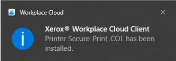 After you have signed in, you might see notifications coming up advising you that a new printer has been installed, this will happen a couple of times as all the available printers are added to your device: