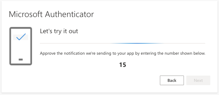 ![]() | 14. In order to test it is working correctly, enter in the numbers shown on screen into your Authenticator app prompt |