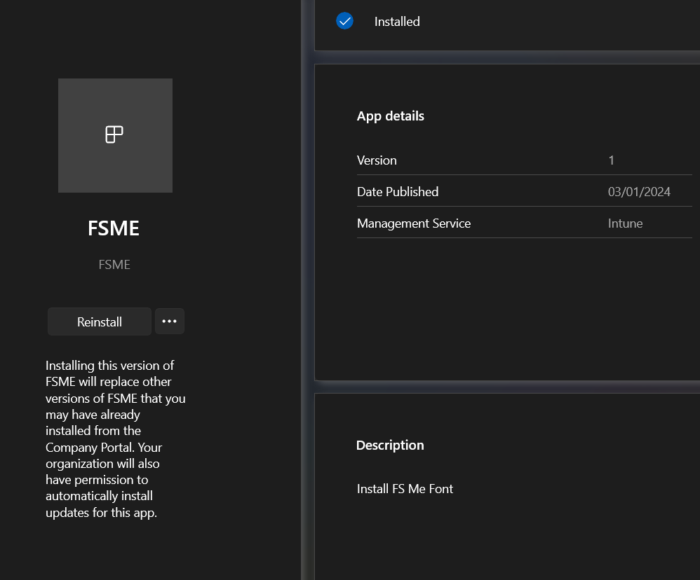 To install FS Me fonts, please go to the company portal and install the following: