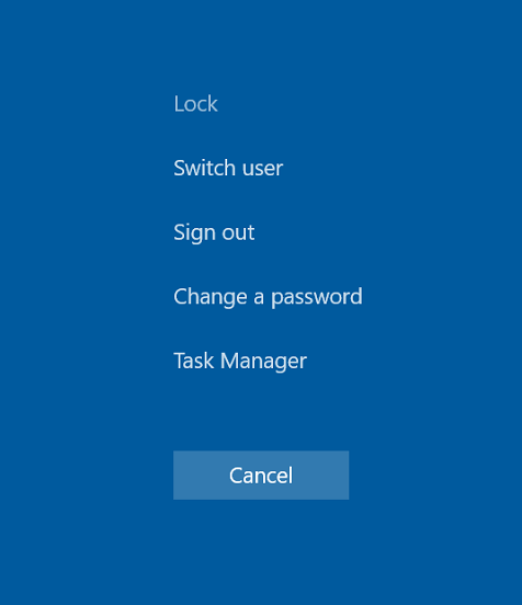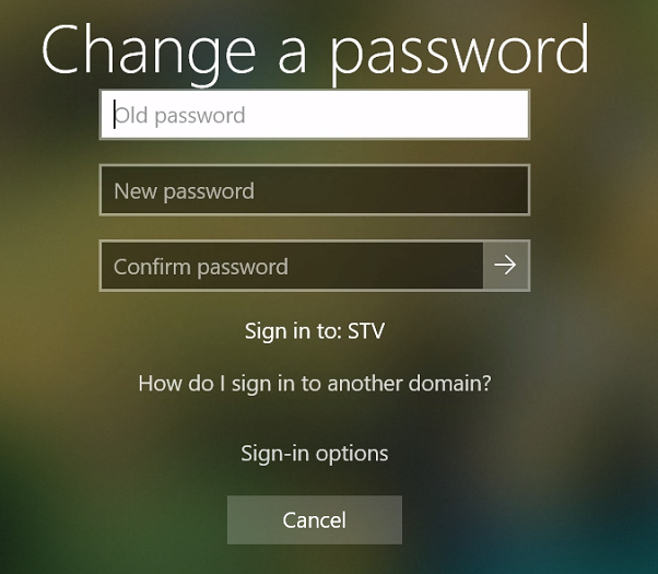 After your first sign in, you can change your password by pressing CTRL + ALT + DEL on your keyboard which brings up the following screen: