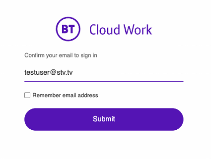 This will open the default browser on your device, and take you to the BT Cloud Work sign in page. Enter your email and hit "Submit":